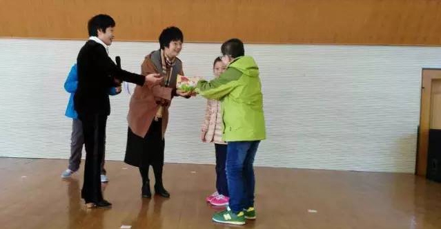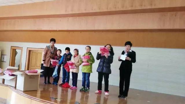 孩子们向副总经理送上礼物表示感谢