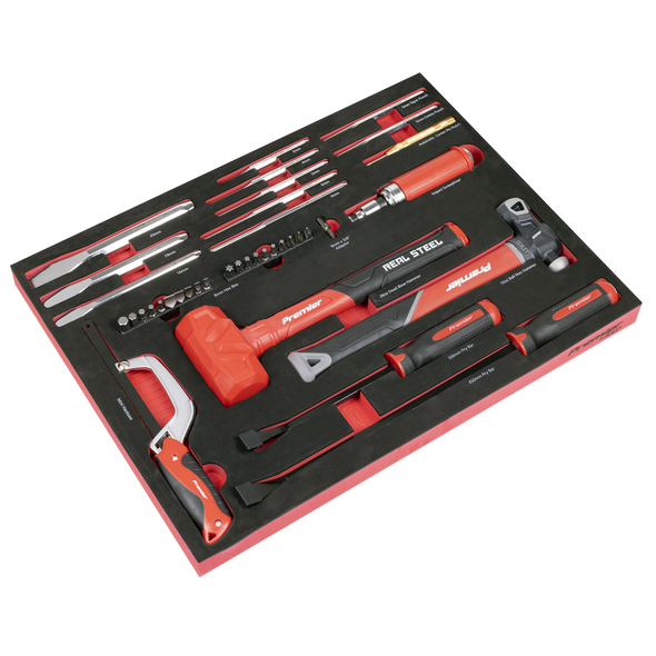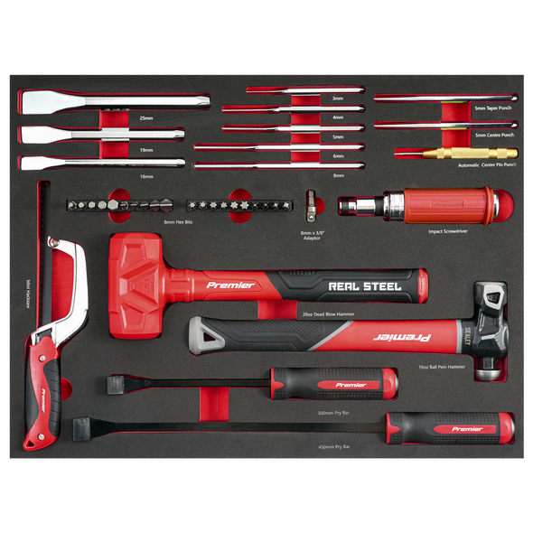 Premier Striking, Pry Bar, Hacksaw & Impact Screwdriver Set with Tool Tray 39pc [TBT66]